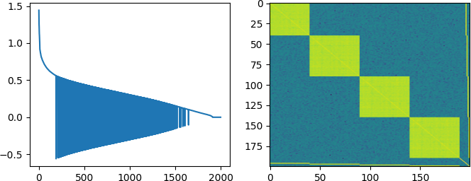 Through the magic of randomized linear algebra, sketched methods allow us to directly obtain the smaller representation, without having to look at the whole thing! This can lead to very substantial gains in speed and scale at minimal or no cost in accuracy, e.g. here is an exact eigendecomposition of a 40000x40000 Deep Learning Hessian, which runs in ~30 seconds on a CPU: